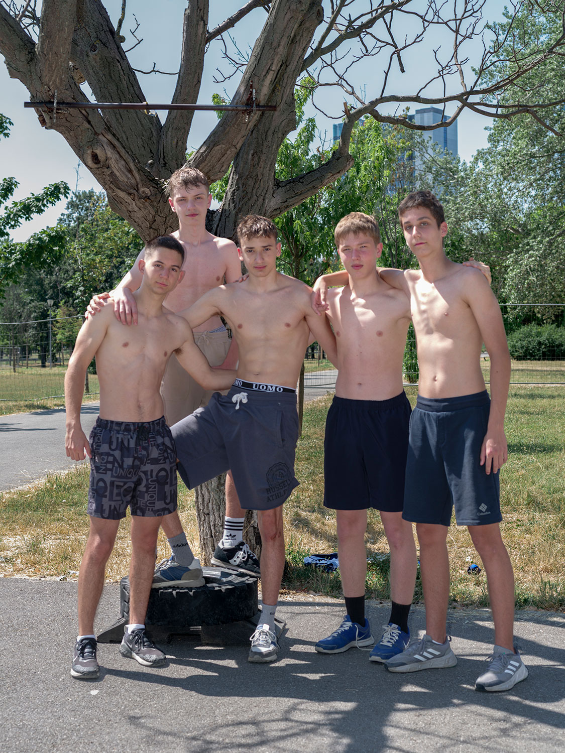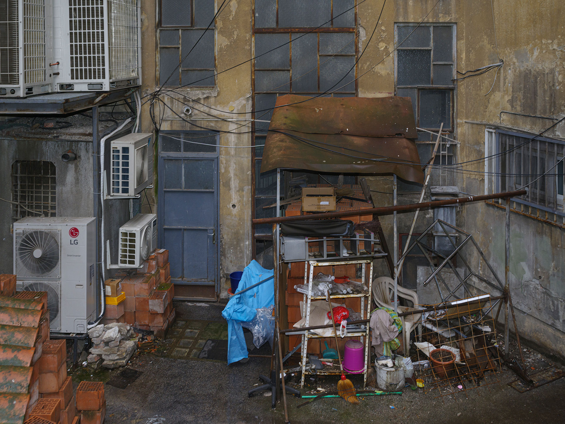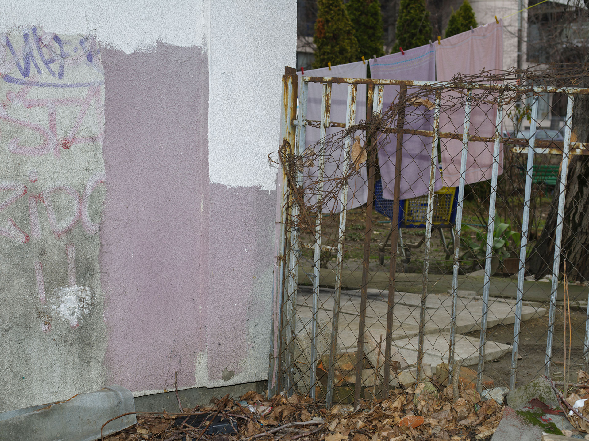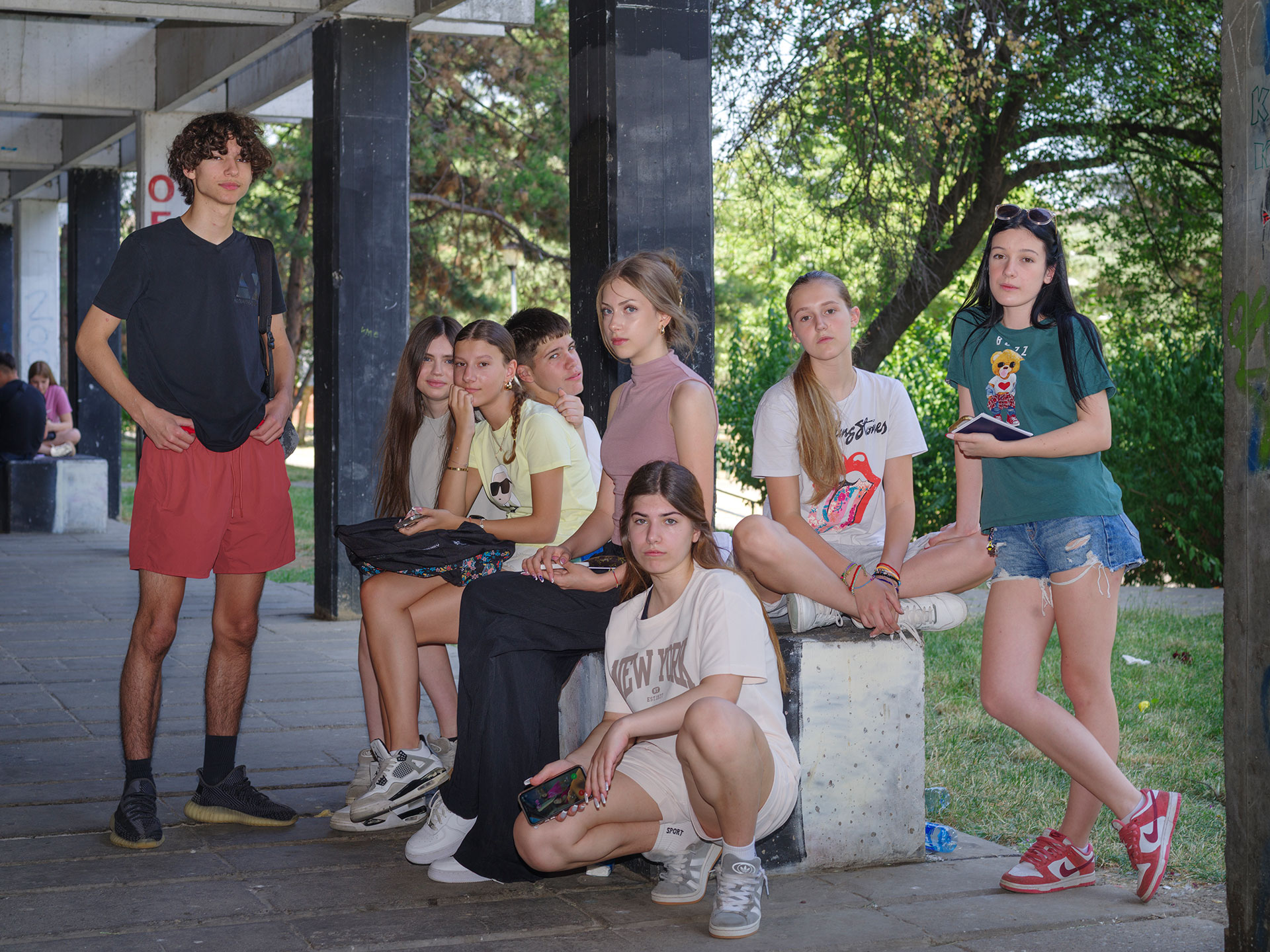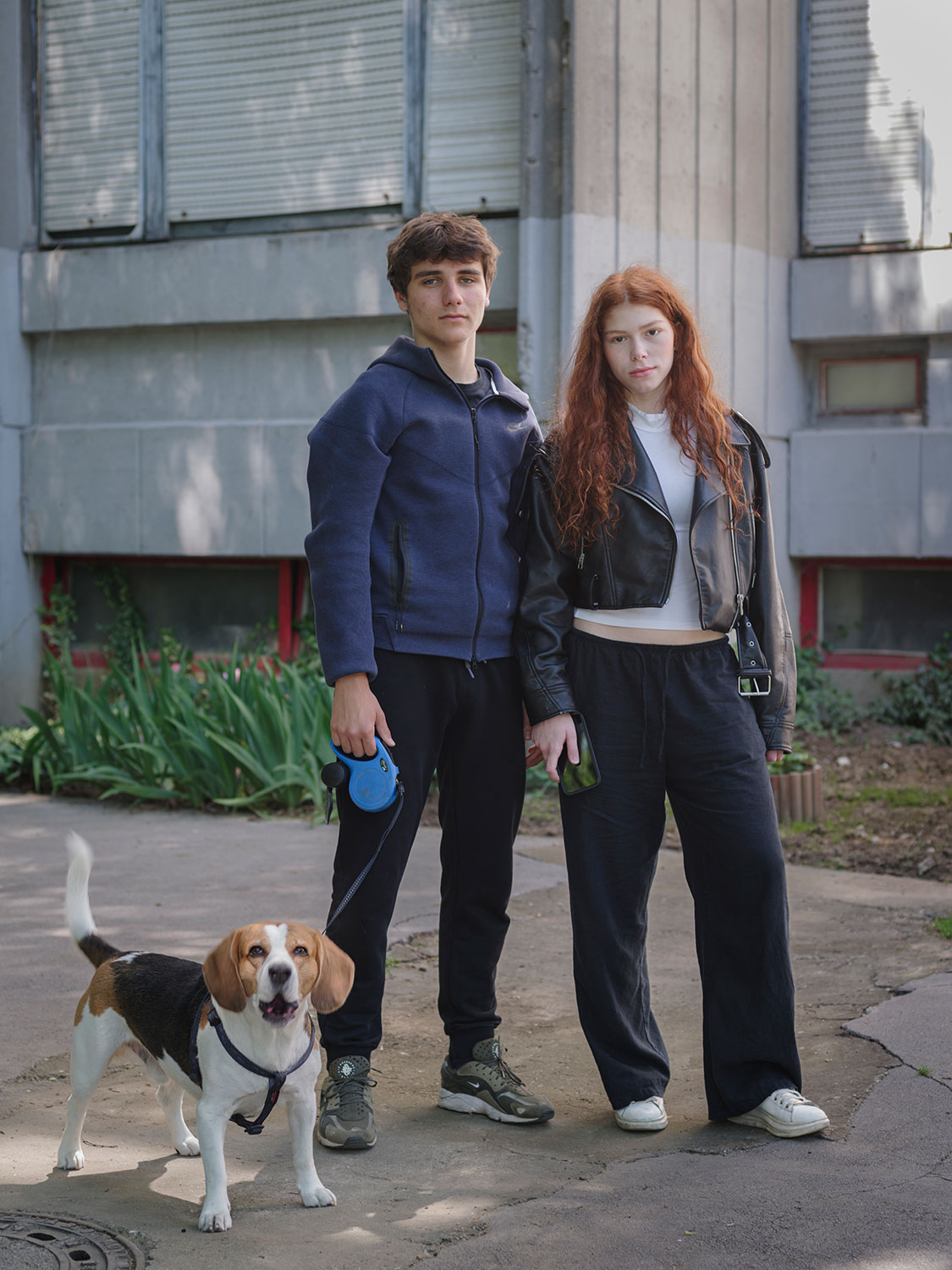 U mojim fotografijama arhitektura je prisutnost — ne dominantna, ne dekorativna, nego oblikujuća. Ona određuje mjerilo, udaljenost, napetost. Dvorišta, ulazi, stubišta, fragmenti fasada — to su prostori u kojima se svakodnevni život oblikuje. Geometrija je stroga, često repetitivna, ali nikada potpuno zatvorena. Ljudi ne samo da nastanjuju te prostore; oni mijenjaju njihovu atmosferu. Tijelo naslonjeno na beton mijenja njegovu temperaturu. Pogled usmjeren prema van mijenja značenje zida. Mali gestovi narušavaju uniformnost, a da je pritom ne razgrađuju.